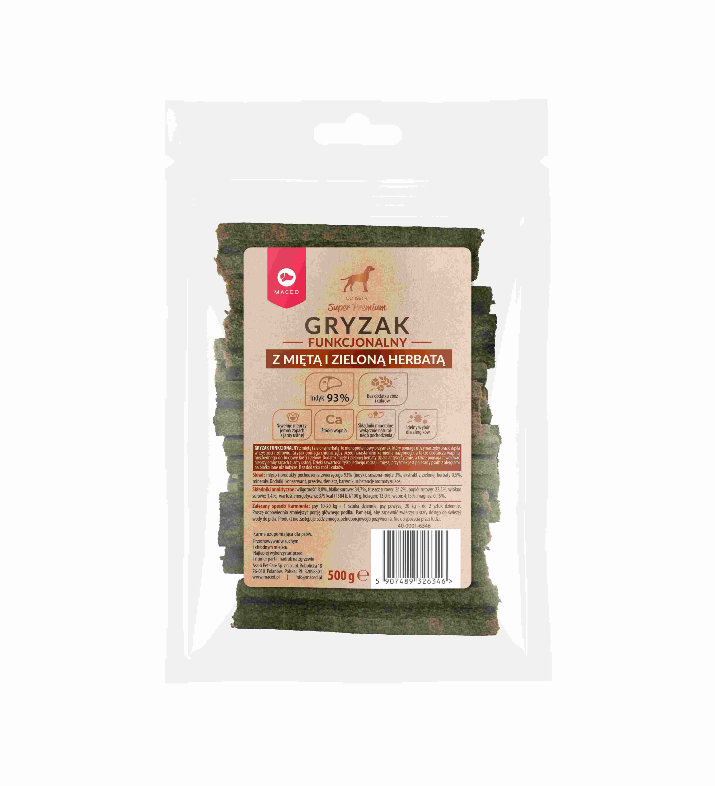 Przejdź do treści MACED – Gryzak Funkcjonalny – z Miętą i Zieloną Herbatą – 500g – InspiredDog